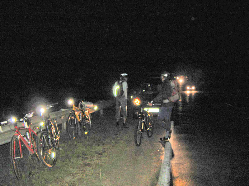 Был один задний моргающий фонарик у Александра - он и ехал последним.