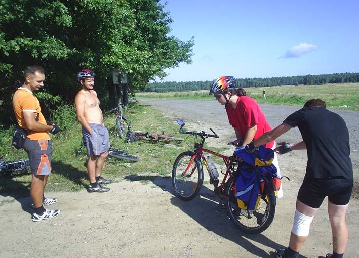 Выехали 6 человек от поворота на Ивановку, вернулось трое. Общий пробег 135км. Время до Яльчика 4,5 часа, обратно 2,5 часа. Максимальная скорость моего метробайка 40 км/час.