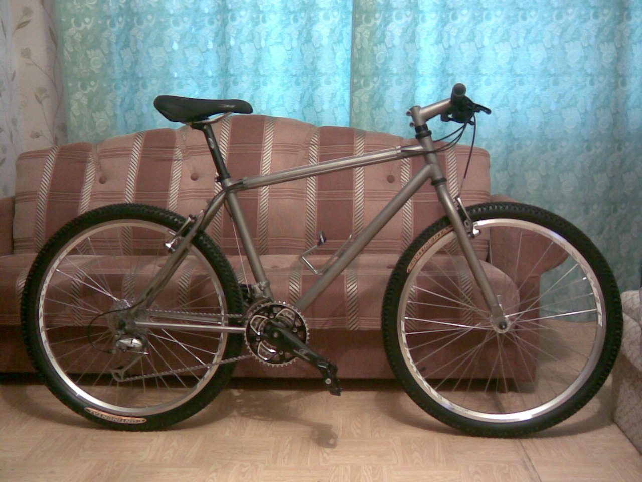 Второй байк - титановый рапидовский ригид. Прокатился даже. Забавно наблюдать, как перья титановой вилки изгибаются на 2-3 см вперед на кочках. Не скажу, что едет мягко, но то, что это не алюминий чувствуется! А цвет и фактура титана - фап фап фап... Фоток увы нетъ (