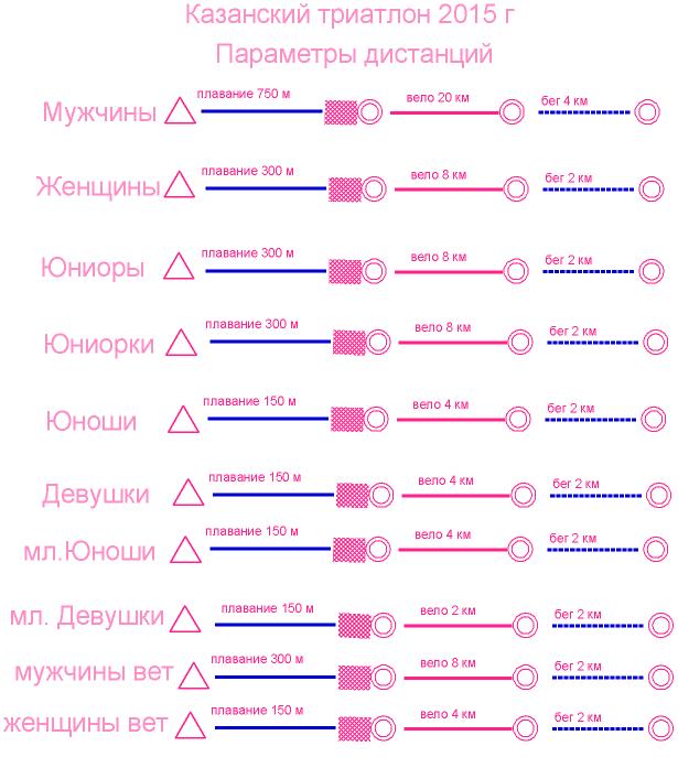 мл.девушки- 12 лет и младше - плавание 150 м - вело 4 км (2 круга х 2км) - бег 2 км (1круг х 2км)