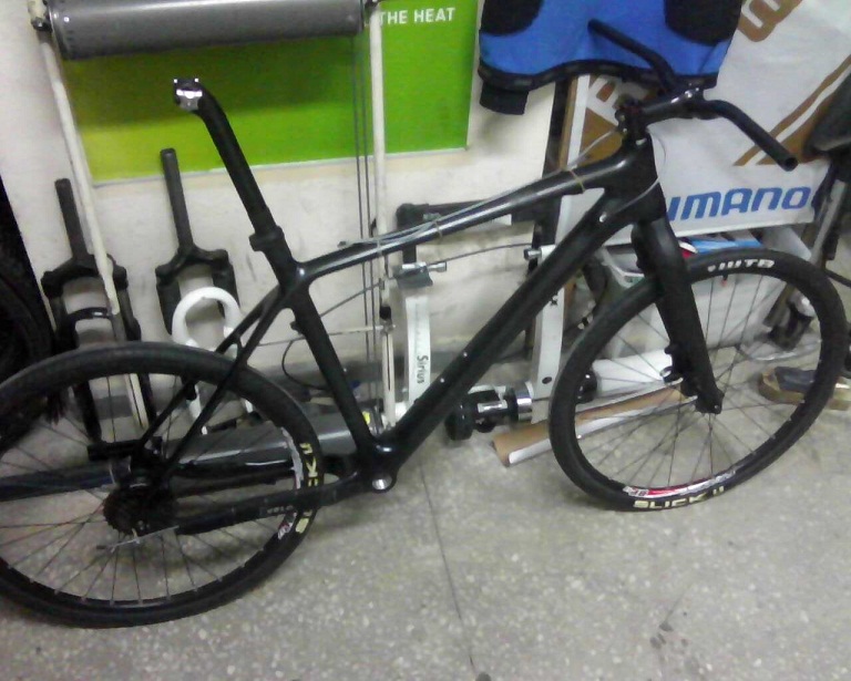 всё карбоновое(кроме рулевой и петуха) :)
