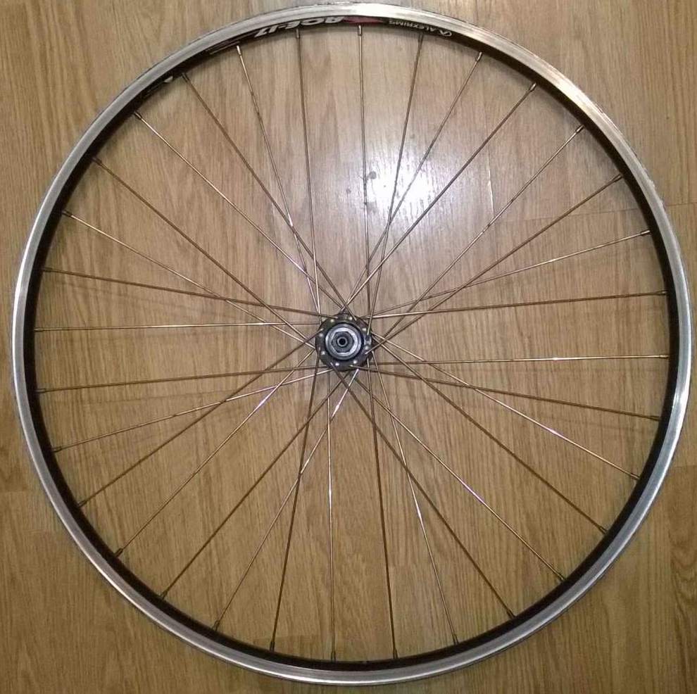 Переднее колесо 26'' от GT Avalanche под ободной тормоз. Обод AlexRims ace17. Втулка на новой смазке, заменены конусы. Без восьмерок.