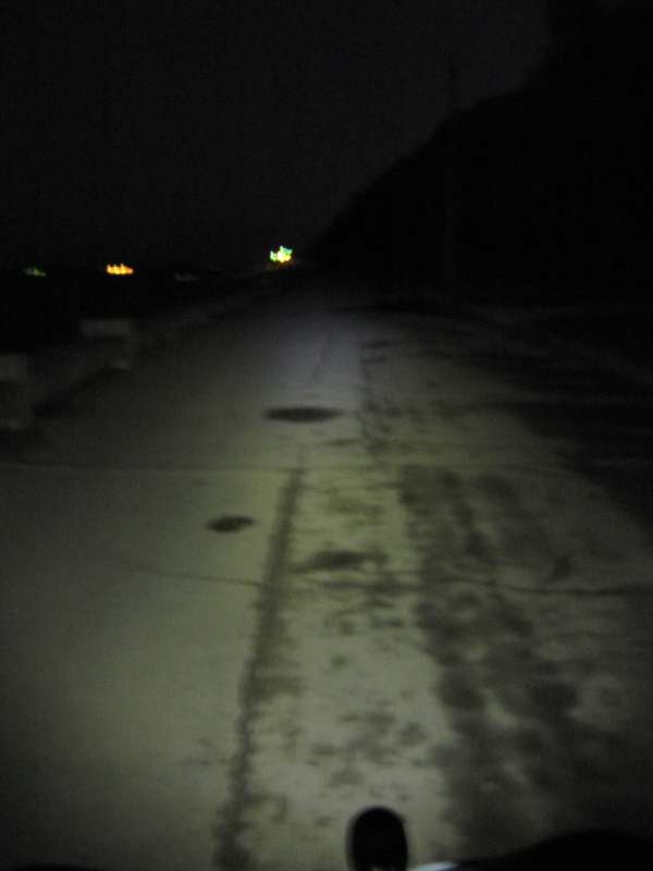 Внизу снимка видна сама фара и то как она освещает видно по всему снимку. Настройки фотаппарата такие же как и на первом снимке. Дорога вполне комфортно освещается. Ехал покрайне мере не очень напрягась.