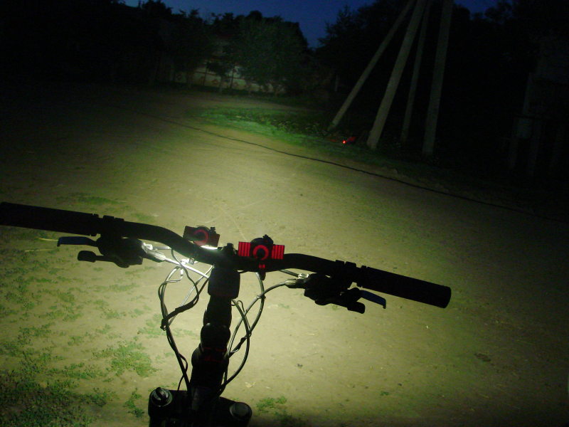 Получившийся свет очень хороший и ровный без тёмных областей, бъет вперёд метров на 30 + пятно от 45 градусной линзы засвечивает ближнюю зону.
