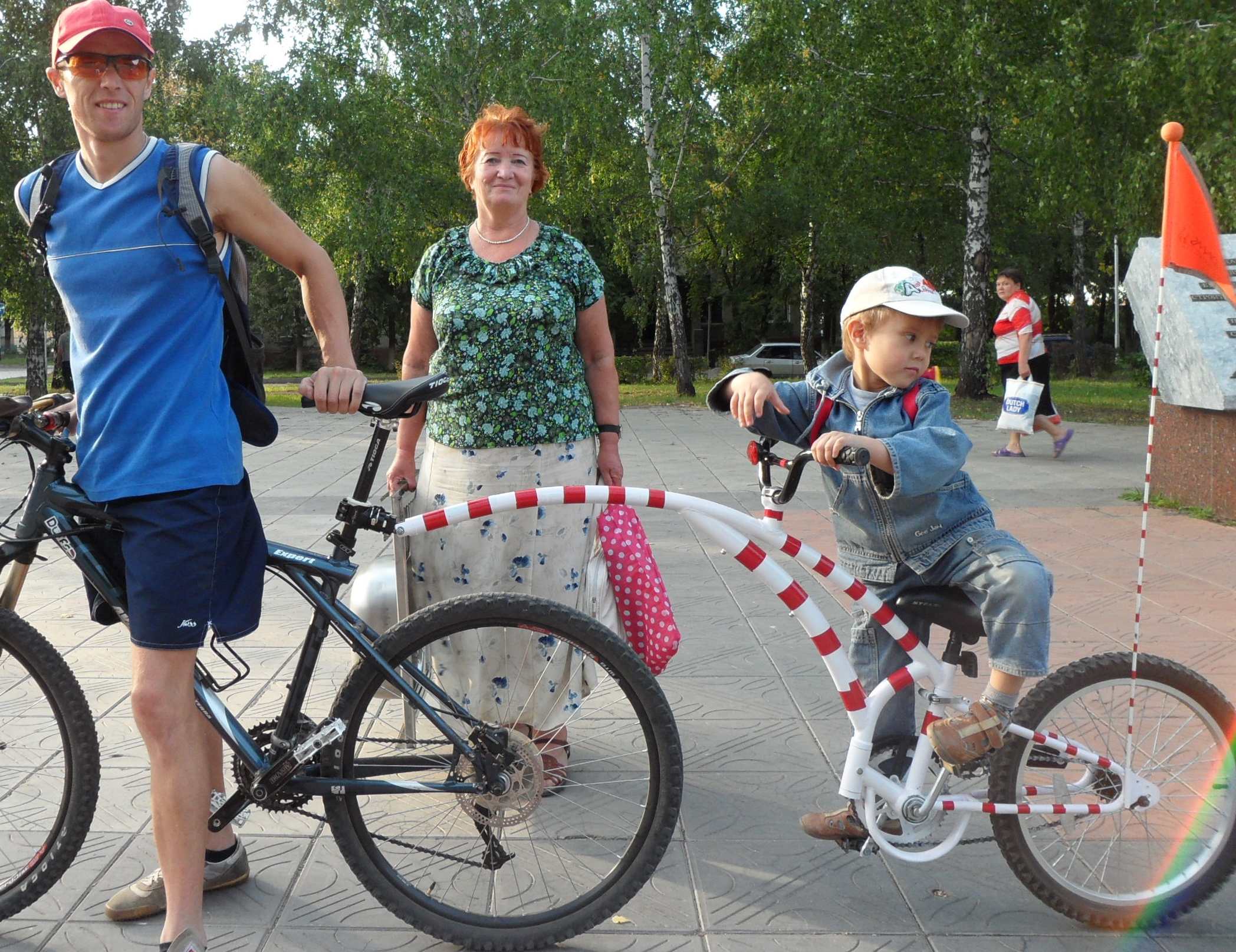 Мама Таня, дочь Ирина (5 лет) ездит пока со мной в велокресле. В этом году будет осваивать 2-4 колесный велосипед.